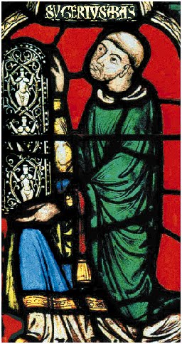 Vitral do século XII na Abadia de St-Denis retratando o Abade Suger. A Casula já segue o modelo gótico.