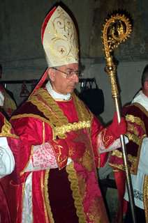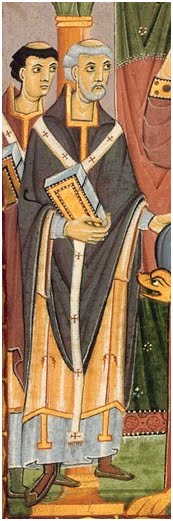 Pintura do Evangeliário de Otto III, cerca do ano 1000. Nela vemos a casula do bispo com leve encurtamento lateral.