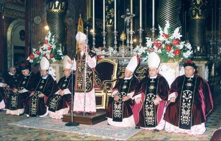 Casula com cruz trífida, que nasce como uma faixa indo até o pescoço, ramifica-se nos ombos e volta a juntar-se nas costas.Caráter Sacrificial e obrigatoriedade da casula