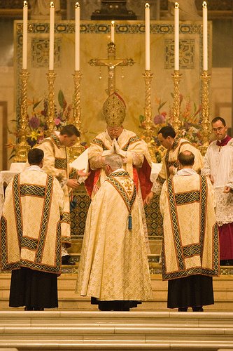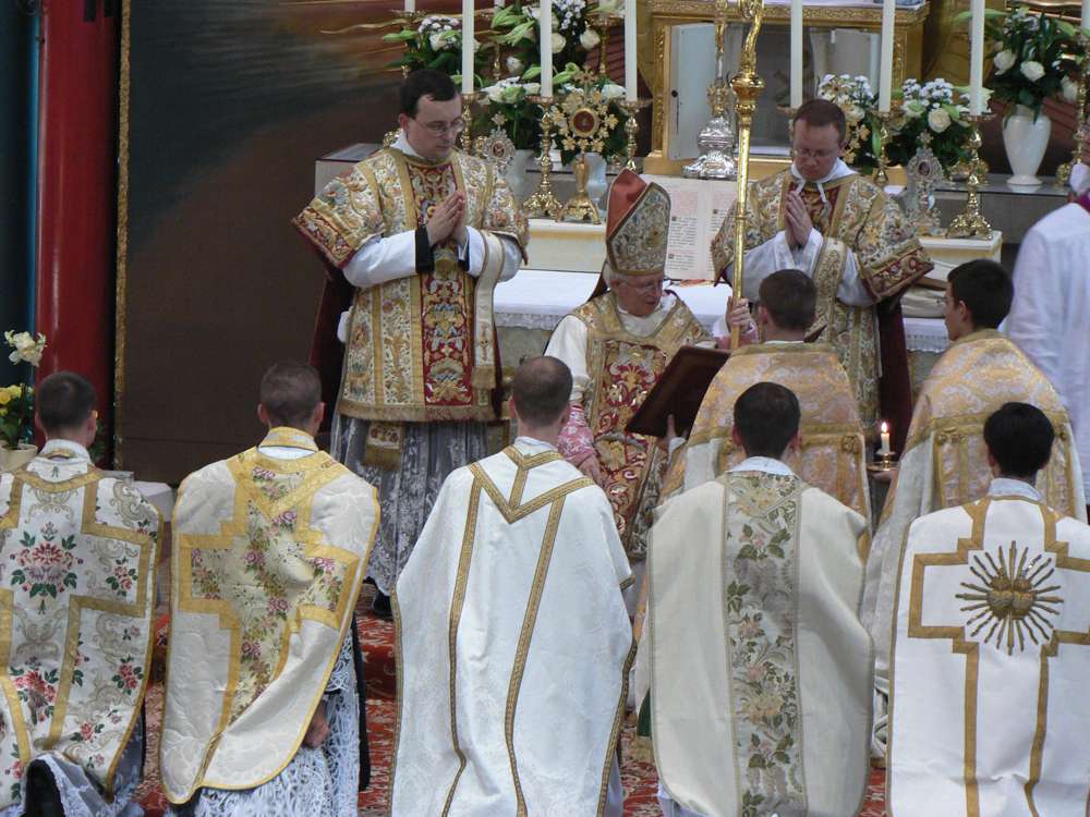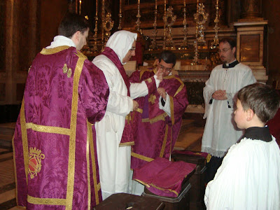 O celebrante endossa casula romana e os concelebrantes usam góticas