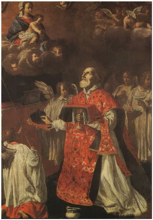 Pintura do século XVII retratando São Felipe de Néri. Nela já vemos um modelo de casula bastante encurtado nas laterais dos braços.